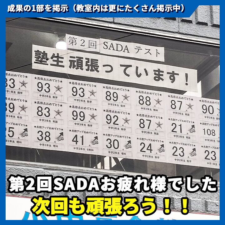 そういえばSADAテスト結果は? 未分類 2025.10.21 第2回SADAテスト結果はこんな感じでした! 今日からは受験や第3回SADAテストに向けて保護者懇談実施! 良い懇談にしていきたいと思います!