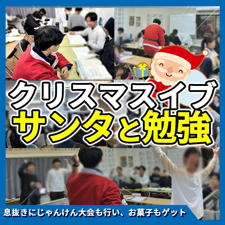 クリスマスイブエンジョイ勉強 未分類 2025.12.26 こんにちは!個別指導アップ学習会光善寺教室です。 クリスマスイブ、教室にサンタ??が現れました(笑) そしてサンタが冬期講習の授業を行ってくれました。 さらにはじゃんけん大会もあって、勝った方はお菓子をゲット! 授業中は真剣に勉強し、楽しむときはガッツリ楽しむ。 そんな塾です! 今年も残りわずかですが、来年に向けて全力で頑張りましょう!